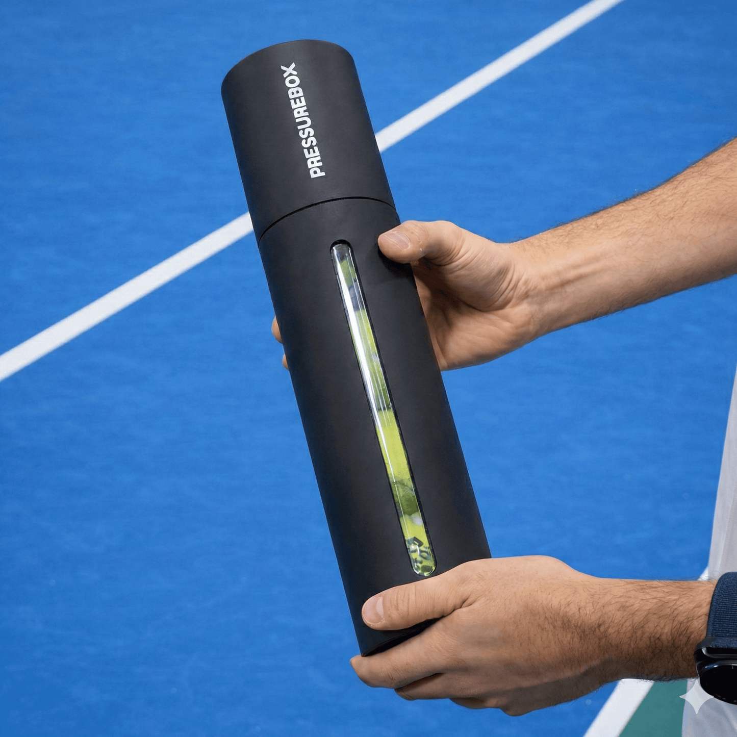Pressurebox automatically stores your tennis & padel balls at optimal pressure, ensuring pressurized balls for every session.